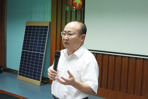 五星公司董事長胡廣良首先與大家分享了國家能源局下發(fā)的《關(guān)于報送整縣(市、區(qū))屋頂分布式光伏開發(fā)試點方案的通知》文件精神。胡董告訴大家,國家能源局文件中已明確,黨政機關(guān)建筑屋頂總面積可安裝光伏發(fā)電比例不低于50%;學校、醫(yī)院、村委會等公共建筑屋頂總面積可安裝光伏發(fā)電比例不低于40%;工商業(yè)廠房屋頂總面積可安裝光伏發(fā)電比例不低于30%;農(nóng)村居民屋頂總面積可安裝光伏發(fā)電比例不低于20%。光伏迎來了歷史性的大發(fā)展機遇,面對新的機遇和挑戰(zhàn),我們應牢牢抓住機遇,迎難而上,憑借自身的技術(shù)、生產(chǎn)、工程、服務優(yōu)勢,投資建設(shè)出更多、更優(yōu)質(zhì)的光伏電站。