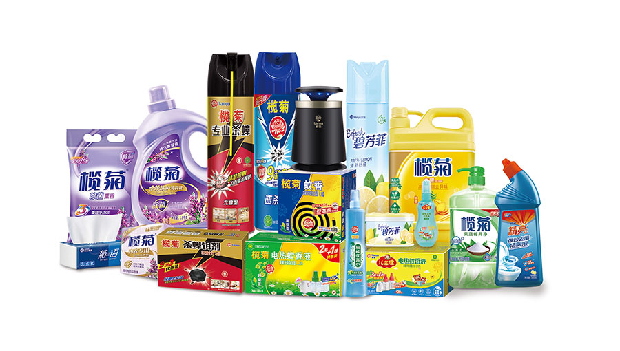 主要產(chǎn)品:欖菊盤(pán)式蚊香、電熱蚊香液、驅(qū)蚊液、電熱蚊香片、電蚊香加熱器、殺蟲(chóng)氣霧劑、殺蟑餌劑、滅蚊燈、電蚊拍、洗衣液、洗潔精、洗衣粉、洗衣皂、洗手液、84消毒液、潔廁精(液)、花露水、空氣清新劑、清香凝膠、生活用紙等