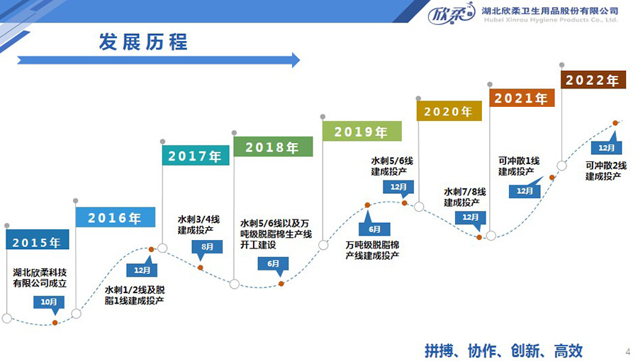 湖北欣柔衛(wèi)生用品股份有限公司成立于2015年10月,位于湖北省孝感市,現(xiàn)已分別建成孝南、安陸兩個廠區(qū),其中:孝南工廠占地300畝,完成投資6億元;安陸工廠占地160畝,計劃投資5億元,共有員工500余人。