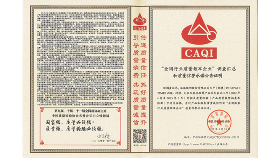 主要產(chǎn)品:FAPAI E TIMES西服、襯衫、大衣及其他服飾產(chǎn)品系列