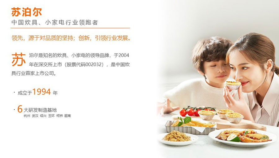 浙江蘇泊爾股份有限公司是中國最大、全球第二的炊具研發(fā)制造商,中國廚房小家電領(lǐng)先品牌。在杭州、玉環(huán)、紹興、武漢和越南建立了5大研發(fā)制造基地,擁有1萬多名員工。蘇泊爾是中國炊具行業(yè)首家上市公司(股票代碼002032)。浙江蘇泊爾家電制造有限公司是浙江蘇泊爾股份有限公司的控股子公司,注冊資本13369萬元,自2004年1月成立,主要生產(chǎn)電飯煲、電蒸鍋、電燉鍋、煎烤器等廚房小家電產(chǎn)品。2022年?duì)I收達(dá)到37.65億元,擁有2100多名員工,目前為中國最大的電飯煲生產(chǎn)基地。