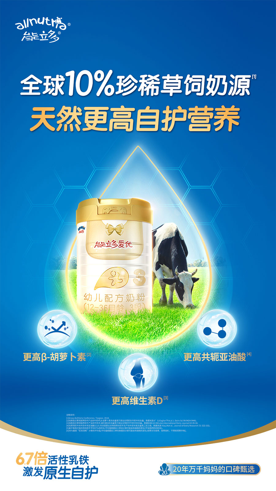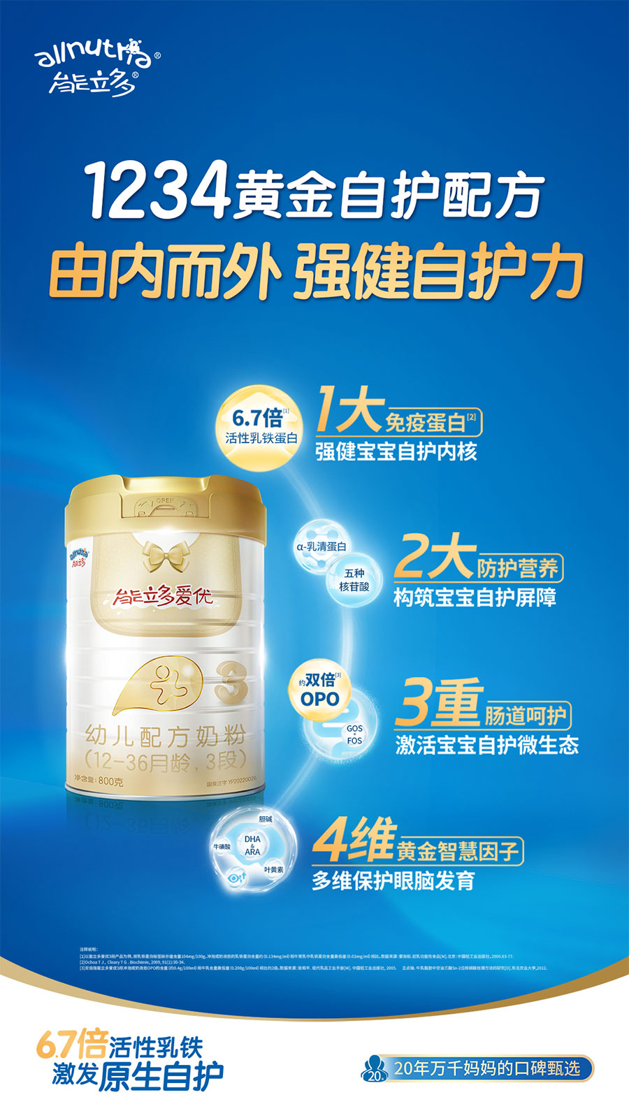 澳優(yōu)以“全球營養(yǎng) 呵護成長”為企業(yè)使命,以消費需求為中心,持續(xù)拓展產(chǎn)品矩陣,已形成覆蓋嬰配奶粉、保健食品、特醫(yī)食品、個性化營養(yǎng)品及服務(wù)的全生命周期呵護體系,正朝著“成為全球最受信賴的配方奶粉和營養(yǎng)健康公司”的愿景穩(wěn)步邁進。