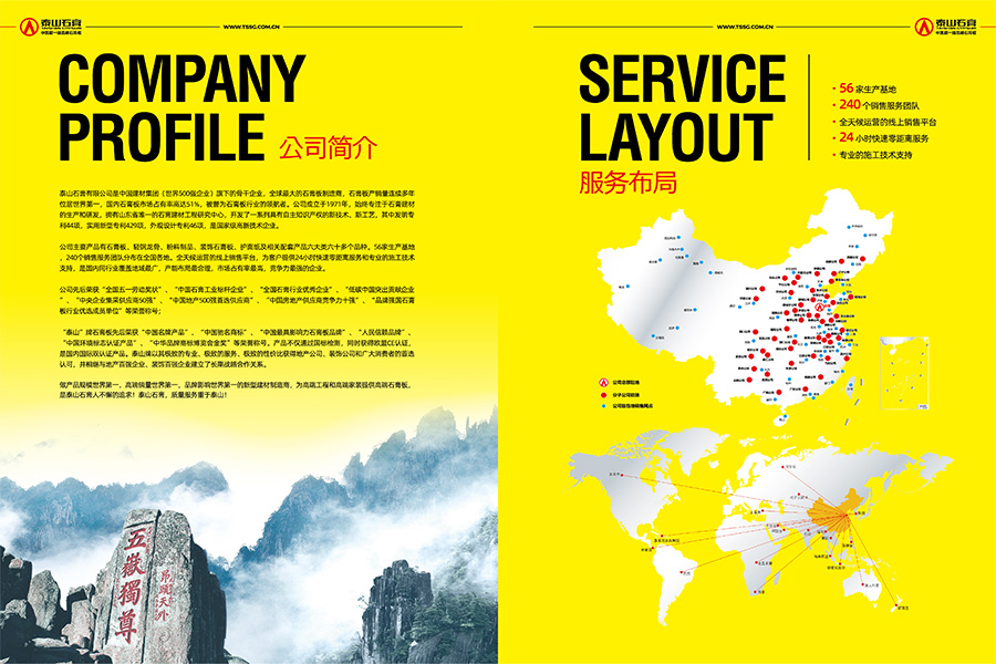 泰山石膏有限公司主要產(chǎn)品有石膏板、輕鋼龍骨、抹灰石膏、裝飾石膏板、護(hù)面紙及相關(guān)配套產(chǎn)品六大類(lèi)六十多個(gè)品種。石膏板年生產(chǎn)能力25億㎡,輕鋼龍骨50萬(wàn)噸,裝飾石膏板2億㎡,護(hù)面紙65萬(wàn)噸。泰山石膏擁有資產(chǎn)133.23億元,56家生產(chǎn)基地分布于全國(guó)23個(gè)省市自治區(qū),240個(gè)銷(xiāo)售服務(wù)團(tuán)隊(duì)分布在全國(guó)各地,全天候運(yùn)營(yíng)的線(xiàn)上銷(xiāo)售平臺(tái),為客戶(hù)提供24小時(shí)快速零距離服務(wù)和專(zhuān)業(yè)的施工技術(shù)支持。是國(guó)內(nèi)同行業(yè)覆蓋地域最廣,產(chǎn)能布局最合理,市場(chǎng)占有率最高,競(jìng)爭(zhēng)力最強(qiáng)的企業(yè)。