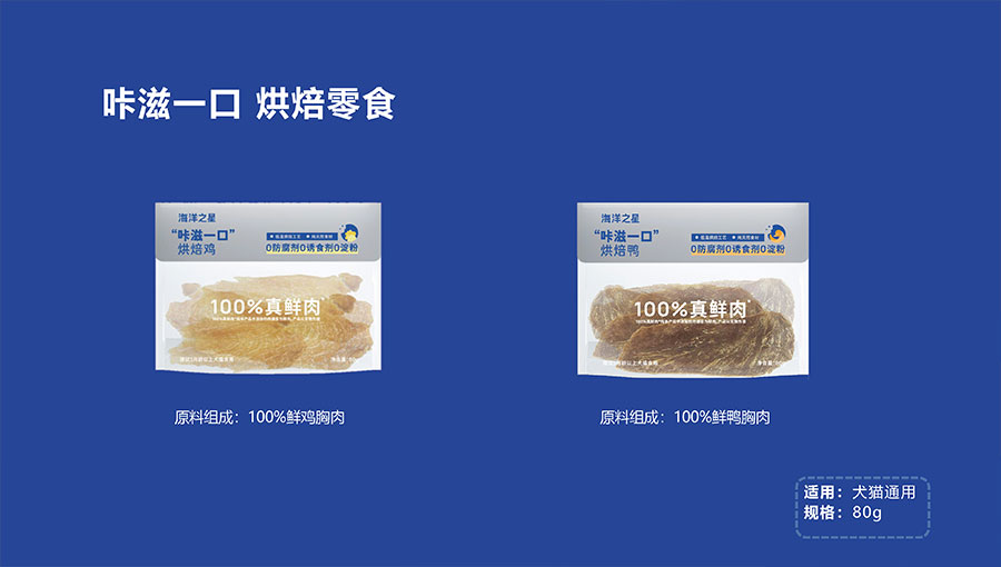 隨著營養(yǎng)消費逐步升級,海洋之星品牌產(chǎn)品線延展至多肉源、多品類,并正式布局烘焙糧市場,以“100%真鮮肉*”重新定義高端烘焙糧品類,為寵主和愛寵提供高品質(zhì)的寵物主糧產(chǎn)品。