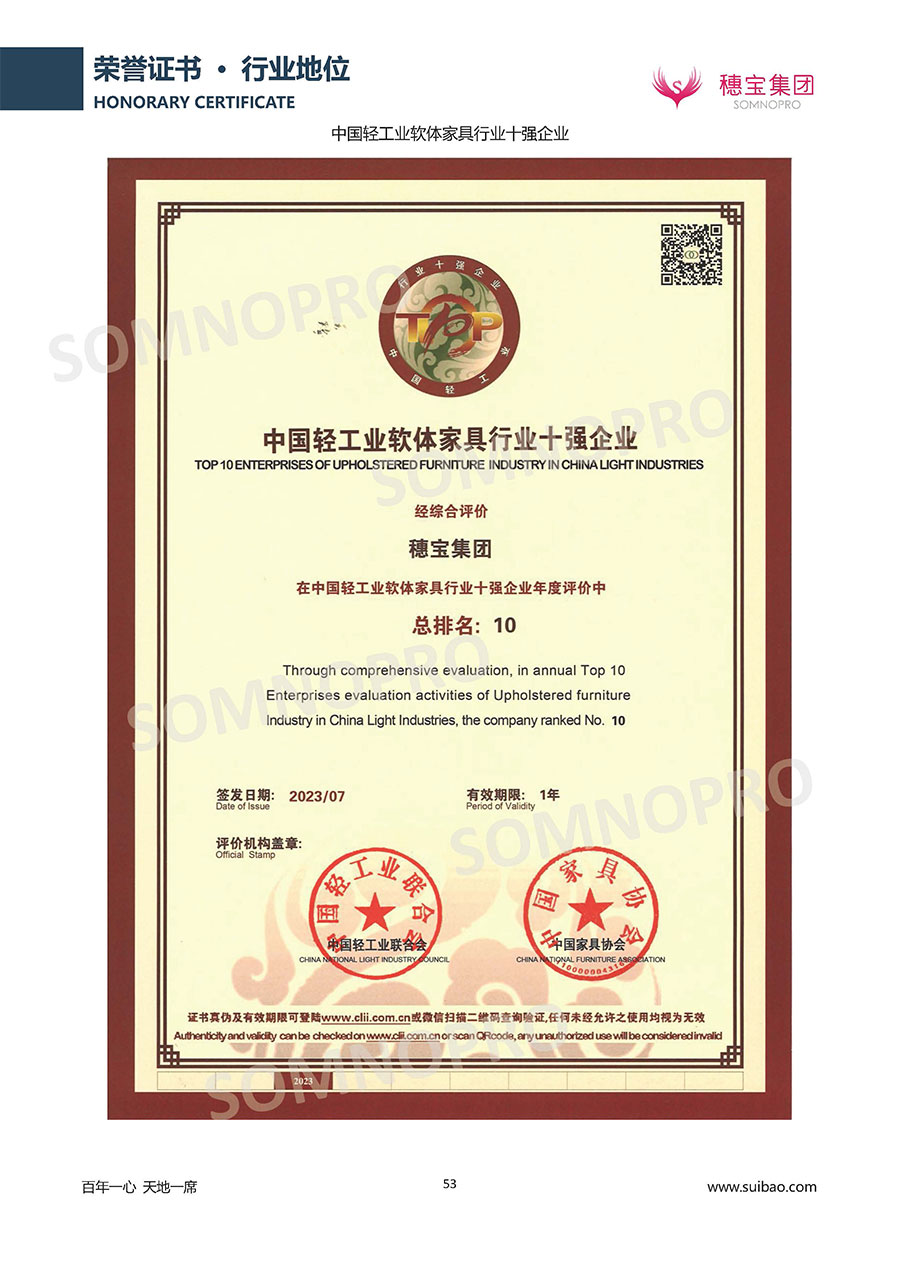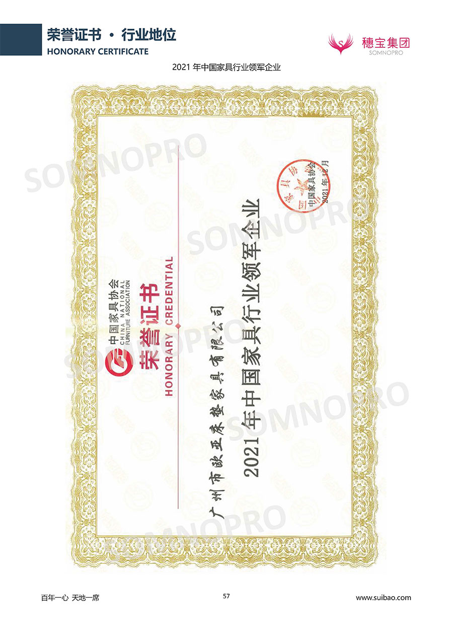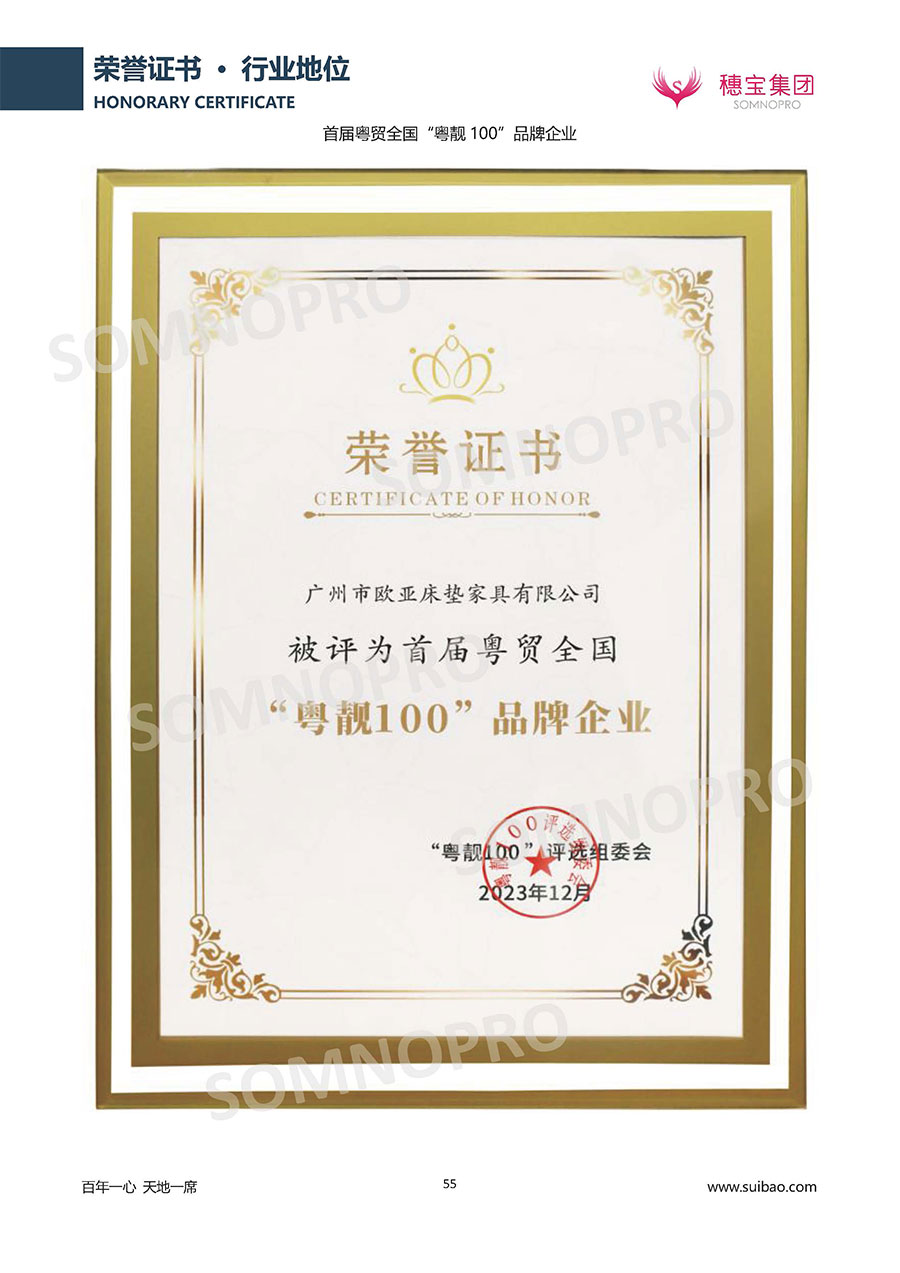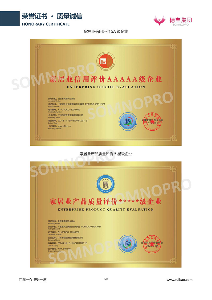 半個(gè)世紀(jì)的付出,穗寶集團(tuán)在深度睡眠領(lǐng)域收獲非凡成就,贏得業(yè)界與社會(huì)的一致贊譽(yù)。作為大家居行業(yè)的品質(zhì)倡導(dǎo)者,穗寶集團(tuán)不斷創(chuàng)新,豐富品牌實(shí)力,致力推動(dòng)中國床墊產(chǎn)業(yè)發(fā)展。