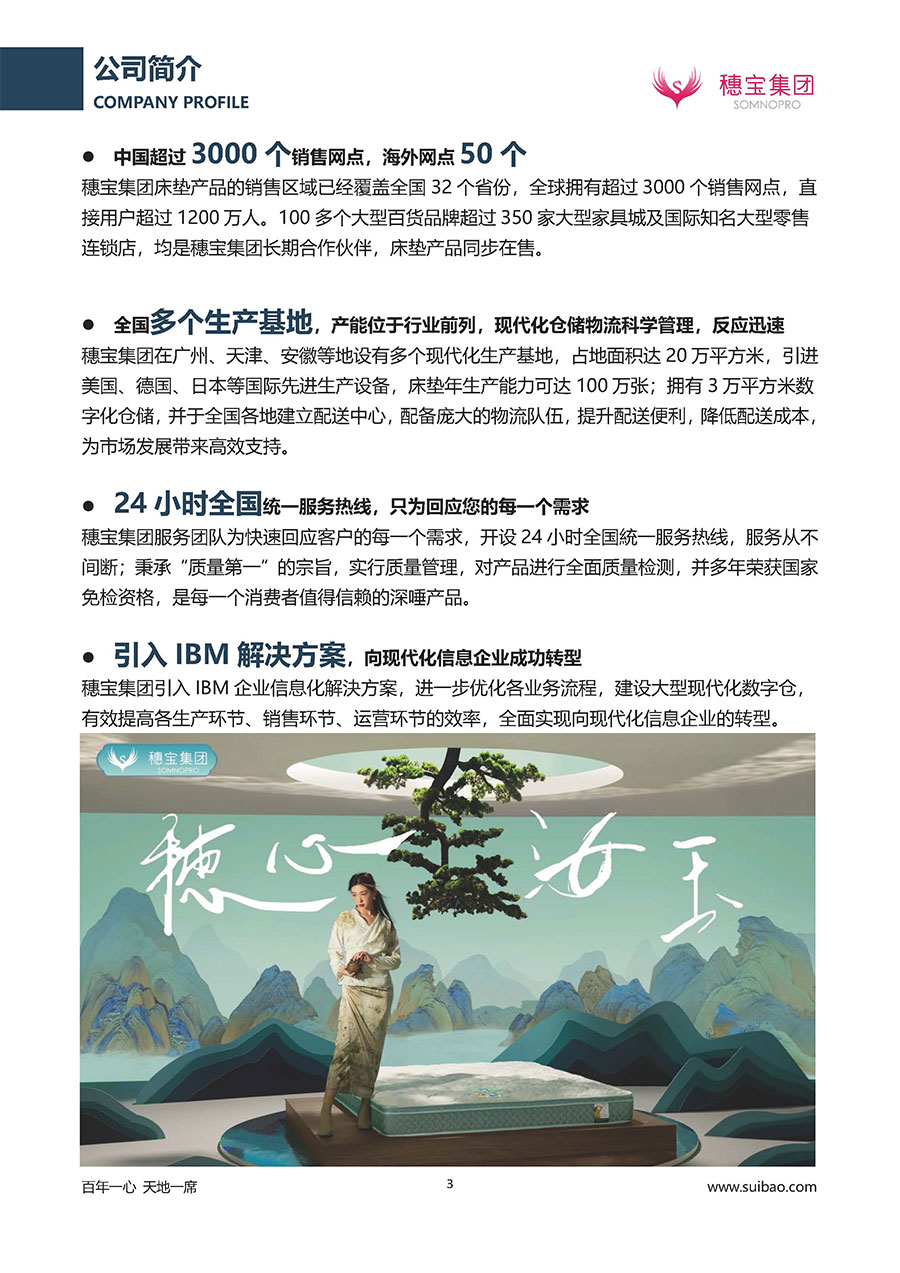 至今,穗寶集團(tuán)旗下?lián)碛卸鄠€(gè)來自世界各地的優(yōu)質(zhì)品牌,包括:穗寶、詩貝艾爾、百納璐詩、睡客小鎮(zhèn)、Mr.Z早先生等;此外,穗寶集團(tuán)從世界各地甄選適合不同消費(fèi)者的優(yōu)質(zhì)睡眠產(chǎn)品,定制屬于您的睡眠空間。如今,穗寶集團(tuán)形成以研發(fā)、生產(chǎn)和銷售床墊為主營業(yè)務(wù),涉及家具、家居裝飾、酒店配套等多項(xiàng)業(yè)務(wù)的企業(yè)群體。