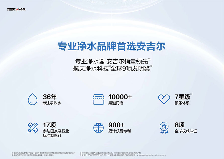 安吉爾擁有高標(biāo)準(zhǔn)的七星服務(wù)體系,服務(wù)覆蓋全國(guó)區(qū)縣2900+,全年每天24小時(shí)無(wú)間斷為用戶(hù)服務(wù),全面保障飲用水安全。