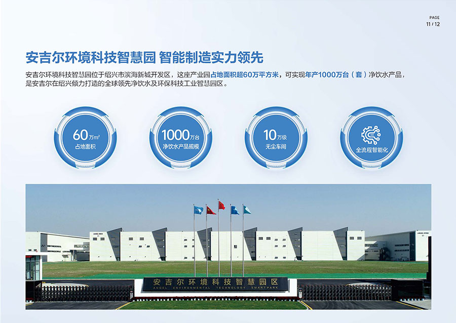 安吉爾擁有三大生產(chǎn)基地,其中安吉爾環(huán)境科技智慧園占地超60萬(wàn)平方米,可實(shí)現(xiàn)年產(chǎn)1000萬(wàn)臺(tái)(套)的凈飲水產(chǎn)品規(guī)模。安吉爾擁有完整的生產(chǎn)管理體系,已獲中國(guó)CQC、美國(guó)UL、美國(guó)NSF、加拿大CSA、法國(guó)BV、英國(guó)ITS、瑞士SGS和德國(guó)TüV全球八項(xiàng)權(quán)威機(jī)構(gòu)認(rèn)證。