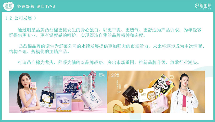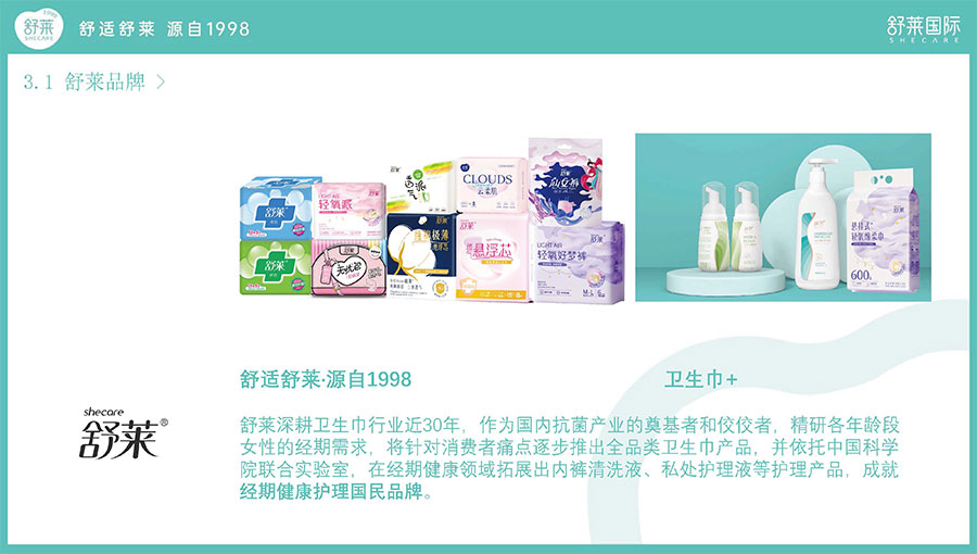 主要產(chǎn)品:舒萊、凸凸棉衛(wèi)生巾、衛(wèi)生護墊、安睡褲(女性衛(wèi)生褲)