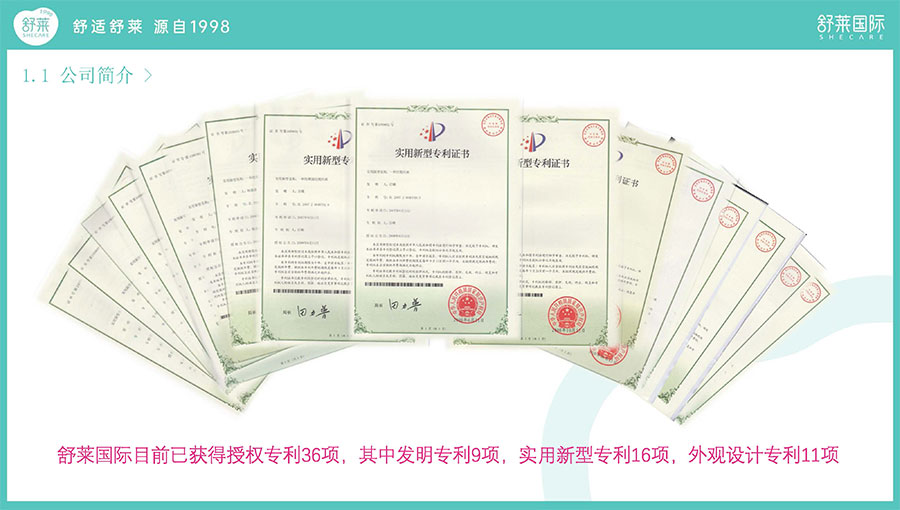 舒萊,一個女性朋友熟知的國貨品牌,26年來一直在襄城縣默默“發(fā)育”。目前舒萊公司擁有12條現(xiàn)代化全自動生產(chǎn)線,不斷地通過產(chǎn)品研發(fā)和技術(shù)創(chuàng)新,取得了輝煌業(yè)績。截至2024年7月1日共有專利36個,擁有9項發(fā)明專利,13項實用新型專利,10項外觀設(shè)計專利,衛(wèi)生巾年生產(chǎn)能力達66億片,被認定為“國家級高新技術(shù)企業(yè)”“省級抗菌婦女衛(wèi)生用品工程技術(shù)研究中心”“中國女性衛(wèi)生用品行業(yè)十強企業(yè)”,已成為國內(nèi)衛(wèi)生巾生產(chǎn)領(lǐng)域領(lǐng)軍企業(yè)。
