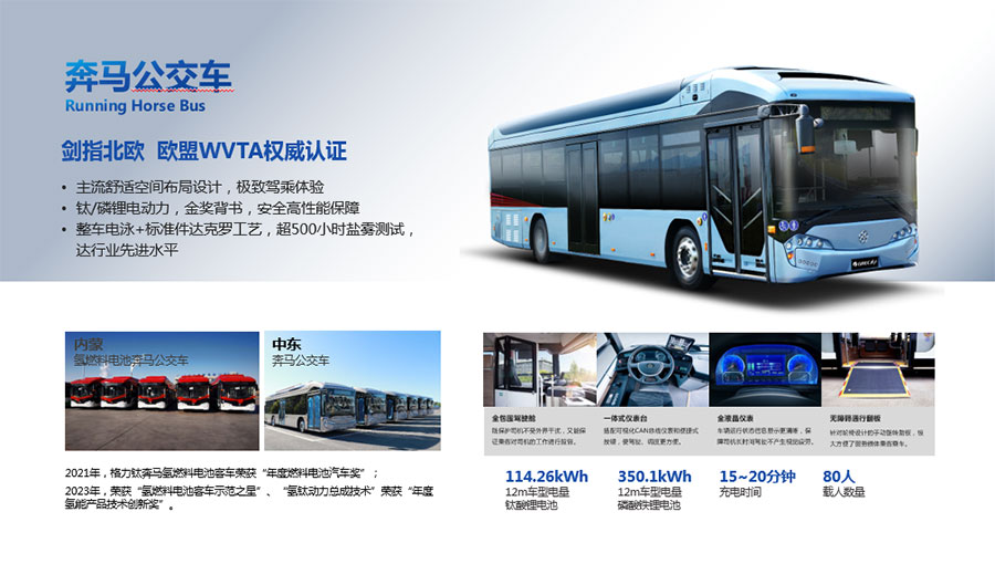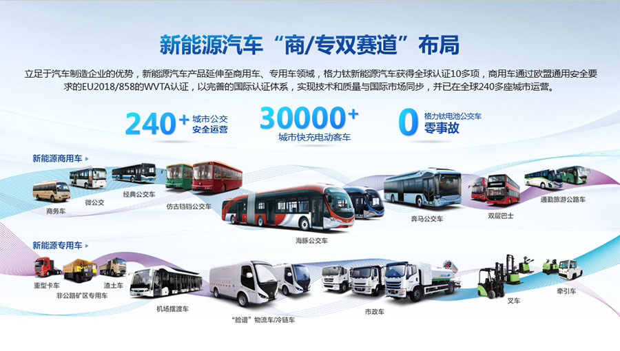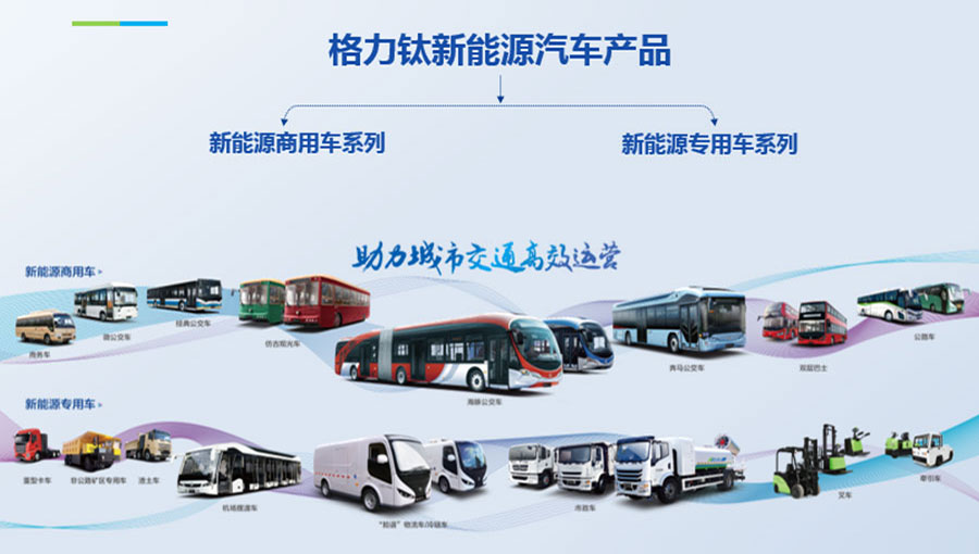 格力鈦新能源股份有限公司一直致力于研發(fā)混合動(dòng)力、氫燃料、純電動(dòng)車等一系列節(jié)能減排的新能源環(huán)保型客車/公交車/物流車,所研制產(chǎn)品體現(xiàn)了電子化、智能化、綠色化、節(jié)能化的鮮明特色,堅(jiān)持以產(chǎn)品開(kāi)發(fā)和市場(chǎng)開(kāi)拓相結(jié)合的經(jīng)營(yíng)方針,引進(jìn)國(guó)外先進(jìn)客車生產(chǎn)技術(shù),力爭(zhēng)通過(guò)資本、技術(shù)及產(chǎn)業(yè)優(yōu)勢(shì),做大區(qū)域市場(chǎng),進(jìn)軍國(guó)際市場(chǎng),力爭(zhēng)成為中國(guó)新能源汽車的領(lǐng)軍企業(yè)集團(tuán)。