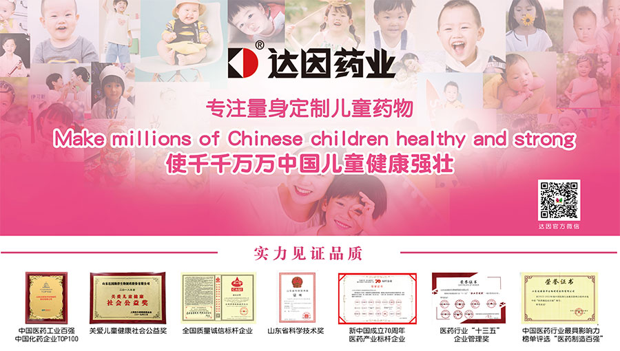 山東達因海洋生物制藥股份有限公司(簡稱達因藥業(yè)),以“使千千萬萬中國兒童健康強壯”為使命,專注于兒童健康領(lǐng)域產(chǎn)品研發(fā)、生產(chǎn)和市場營銷,以專業(yè)和責任捍衛(wèi)兒童用藥安全,在兒科專業(yè)用藥領(lǐng)域取得了良好的口碑和覆蓋率,樹立了中國兒童用藥的旗幟地位。達因藥業(yè)產(chǎn)品線涉及兒童藥品、兒童保健食品和兒童營養(yǎng)食品、兒童健康用品等領(lǐng)域,形成了以“兒童保健和治療”領(lǐng)域為核心的兒童健康產(chǎn)業(yè)布局。