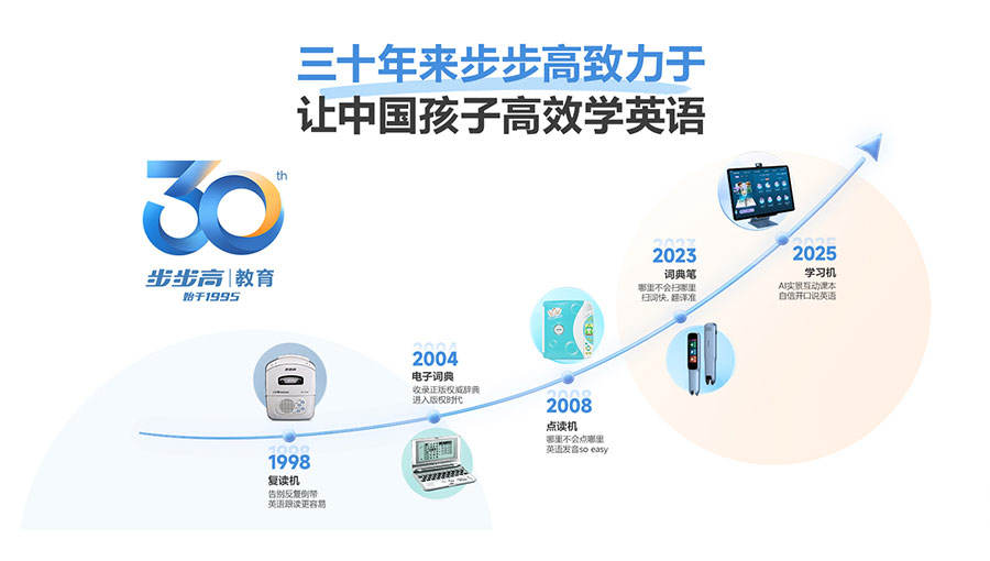 歷經(jīng)30年發(fā)展,“步步高”品牌先后推出了復(fù)讀機、點讀機、學(xué)習(xí)機、家教機、智能學(xué)習(xí)平板、詞典筆等經(jīng)典產(chǎn)品,深受家長和學(xué)生認可,是中國電教行業(yè)領(lǐng)先品牌。