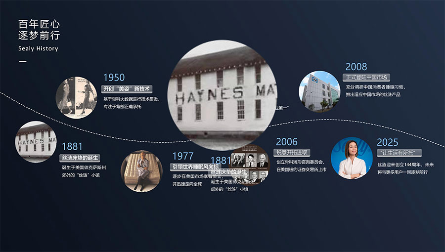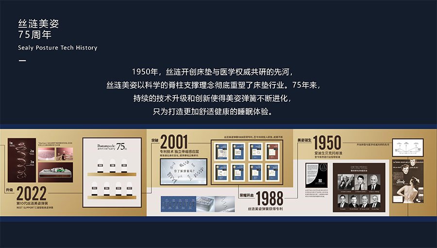 絲漣SEALY1881年誕生于美國,自1885年第一張絲漣床墊問世伊始,便憑借其卓越性能與舒適安睡體驗聲名大噪。1950年,絲漣開創(chuàng)床墊與醫(yī)學(xué)權(quán)威共研的先河,絲漣美姿以科學(xué)的脊柱支撐理念徹底重塑了床墊行業(yè)。75年來,持續(xù)的技術(shù)升級和創(chuàng)新使得美姿彈簧不斷進(jìn)化,只為打造更加舒適健康的睡眠體驗。