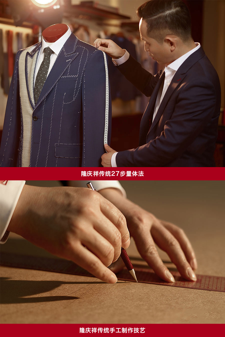 隆慶祥始于1522年,擁有五百年家族制衣史。先祖因制衣工藝精湛、裁作舒適,明朝得賜“袁氏裁作”,清代獲賜“天慶祥瑞”,為感念皇恩,先祖將裁案制成匾額,改字號(hào)為“隆慶祥”。隆慶祥將“量身定制,私人裁縫”“1+1”量身定制貼心服務(wù)作為核心模式,為客戶提供“一站式”尊貴服務(wù)。