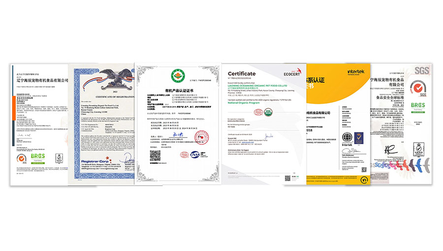海辰有機(jī)擁有多項(xiàng)權(quán)威體系認(rèn)證,如中國(guó)國(guó)標(biāo)有機(jī)寵物食品認(rèn)證、美國(guó)NOP有機(jī)寵物食品認(rèn)證、美國(guó)FDA認(rèn)證、BRC全球食品標(biāo)準(zhǔn)安全認(rèn)證、ISO9001質(zhì)量管理體系認(rèn)證、ISO24001環(huán)境管理體系認(rèn)證、ISO45001職業(yè)健康安全管理體系認(rèn)證和ISO22000食品安全管理體系認(rèn)證等。同時(shí),該公司還榮獲了遼寧省省級(jí)企業(yè)技術(shù)中心、遼寧省高新技術(shù)企業(yè)、遼寧省科技型中小企業(yè)、遼寧省創(chuàng)新型中小企業(yè)、遼寧省專精特新中小企業(yè)、遼寧省瞪羚企業(yè)、遼寧省省級(jí)數(shù)字化車間、遼寧省5G全連接工廠試點(diǎn)示范項(xiàng)目以及2023年度省級(jí)綠色工廠等多個(gè)榮譽(yù)稱號(hào)。