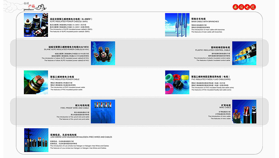西隆電纜主要產(chǎn)品:高低壓電力電纜(阻燃、耐火、耐寒、耐高溫、低煙無鹵、低煙低鹵、輻照交聯(lián)、預(yù)分支、電氣化鐵道電纜等)、架空絕緣導(dǎo)線(含耐候架空導(dǎo)線、集束平行導(dǎo)線、ABC架空導(dǎo)線)、架空裸導(dǎo)線(含鋼芯鋁絞線、鋁絞線、鋁合金絞線、鋁包鋼芯鋁絞線等)、電線(民用電線、戶外耐候線)、控制電纜、橡套電纜、礦用阻燃電纜、硅橡膠電纜、計算機電纜、光伏專用電纜、鋁合金電力電纜、氟塑料電纜等。