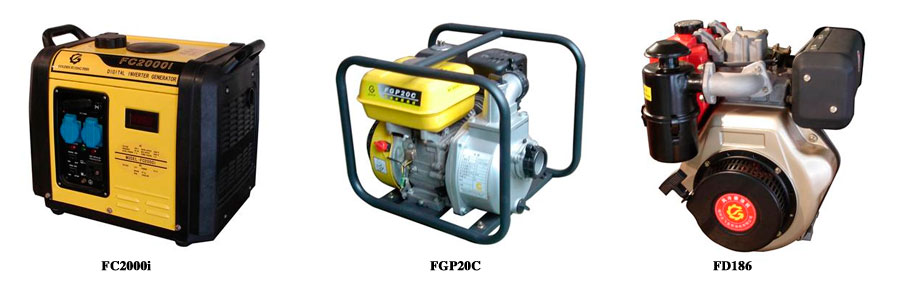 公司主要產(chǎn)品有:一、水冷式:R165、R170、R170B、R175、R175A、R176、R178、R180A、R180、R185A、R185、R190、R192、ZSl95、ZSll00、ZSlllO、ZSlll5、ZSll25。有預(yù)燃、渦流、一滾一滑、雙滾、蒸發(fā)、冷凝、電啟動(dòng)等二十幾種基本型單缸系列柴油機(jī)及一百多種變形產(chǎn)品。二、風(fēng)冷式:1、F系列單缸立式風(fēng)冷柴油機(jī)FDl70、FDl78、FDl86。2、變頻發(fā)電機(jī)組。3、臥式風(fēng)冷柴油機(jī):160F、165FA、165F、170F、175F。4、F系列單缸頂置式(OHV)風(fēng)冷汽油機(jī)FGl52、FGl60、FG200、FG240、FG270、FG340、FG390。5、F系列柴油發(fā)電機(jī)組(輸出功率1.5KW-5.5KW)。6、F系列汽油發(fā)電機(jī)組(輸出功率0.85KW-5.5KW)。7、F系列靜音發(fā)電機(jī)組(輸出功率2.8KW-5.5KW)。8、F系列單缸二沖程便攜式汽油發(fā)電機(jī)組(輸出功率0.5KW-0.8KW)。9、F系列柴油、汽油水泵機(jī)組(1.5、2、3、4泵組)。10、F系列柴油、汽油高壓泵組(1.5、2泵組)。11、F系列柴油、汽油高壓清洗機(jī)。三、發(fā)電設(shè)備:8KW-1000KW系列發(fā)電設(shè)備機(jī)組等。