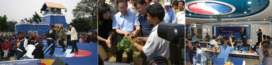百事公司在大中華區(qū)經(jīng)營的主要品牌包括:百事可樂、百事輕怡、百事極度、純果樂·果繽紛、純果樂·鮮果粒、純果樂·百分百、美年達、七喜、激浪、佳得樂、草本樂、冰純水、都樂果汁、樂事薯片、桂格麥片和奇多等。百事大中華區(qū)員工約3萬人,并間接地為15萬多人提供了就業(yè)機會,包括服務商、供應商和分銷商等。近五年來,百事在中國共上繳國家利稅超過52億元人民幣,百事大中華區(qū)已成為百事公司在海外最大的飲料市場。2010年5月21日,百事公司董事長兼首席執(zhí)行官盧英德在到訪中國參觀上海世博會時宣布,百事公司計劃未來三年在中國繼續(xù)追加投資25億美元,主要用于建立新廠、增強在華研發(fā)實力、拓展農(nóng)業(yè)項目及加強品牌建設。