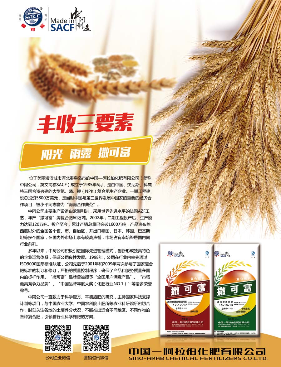 中阿公司一直致力于科學配方、平衡施肥的研究,主持國家科技支撐計劃等項目,與中國農(nóng)業(yè)大學、中國農(nóng)科院土肥所等農(nóng)業(yè)科研院所密切合作,時刻關(guān)注各地的土壤養(yǎng)分狀況,不斷推出適合不同地區(qū)、不同作物的各種復合肥,引領(lǐng)著行業(yè)科學施肥的方向。