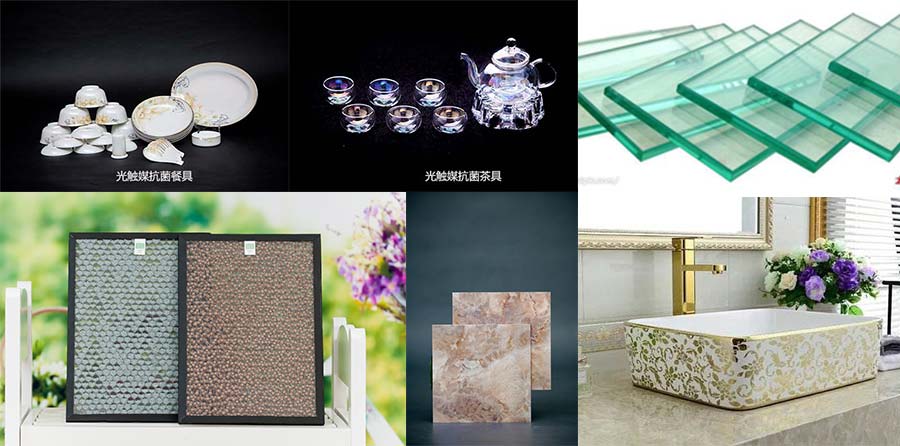抗菌領(lǐng)域 包含抗菌噴劑、抗菌玻璃、抗菌陶瓷、室內(nèi)和車內(nèi)的空氣凈化等。廣泛用于建筑用玻璃、廚具、餐具、衛(wèi)具和醫(yī)療器械等領(lǐng)域,以及室內(nèi)和車內(nèi)的空氣凈化器、空調(diào)和新風(fēng)系統(tǒng)的空氣凈化過濾除菌功能組件。