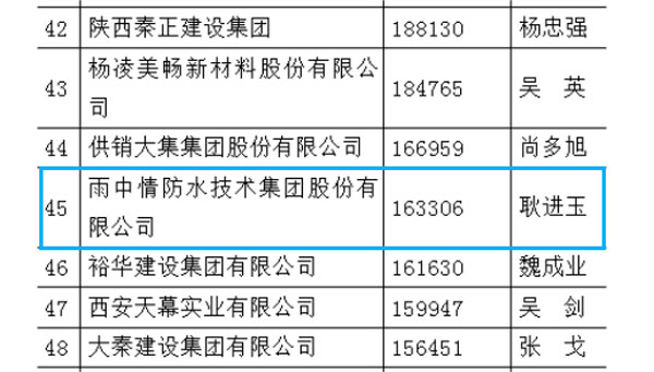 ???????雨中情連續(xù)三年上榜陜西民營(yíng)50強(qiáng)企業(yè)