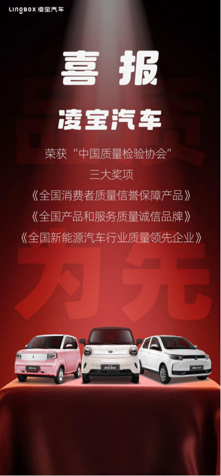 誠信為本,質(zhì)量為先。近日,凌寶汽車摘得中國質(zhì)量檢驗(yàn)協(xié)會(huì)“全國消費(fèi)者質(zhì)量信譽(yù)保障產(chǎn)品”“全國產(chǎn)品和服務(wù)質(zhì)量誠信品牌”“全國新能源汽車行業(yè)質(zhì)量領(lǐng)先企業(yè)”三項(xiàng)大獎(jiǎng),為今年的圓滿收官畫上了濃墨重彩的一筆。