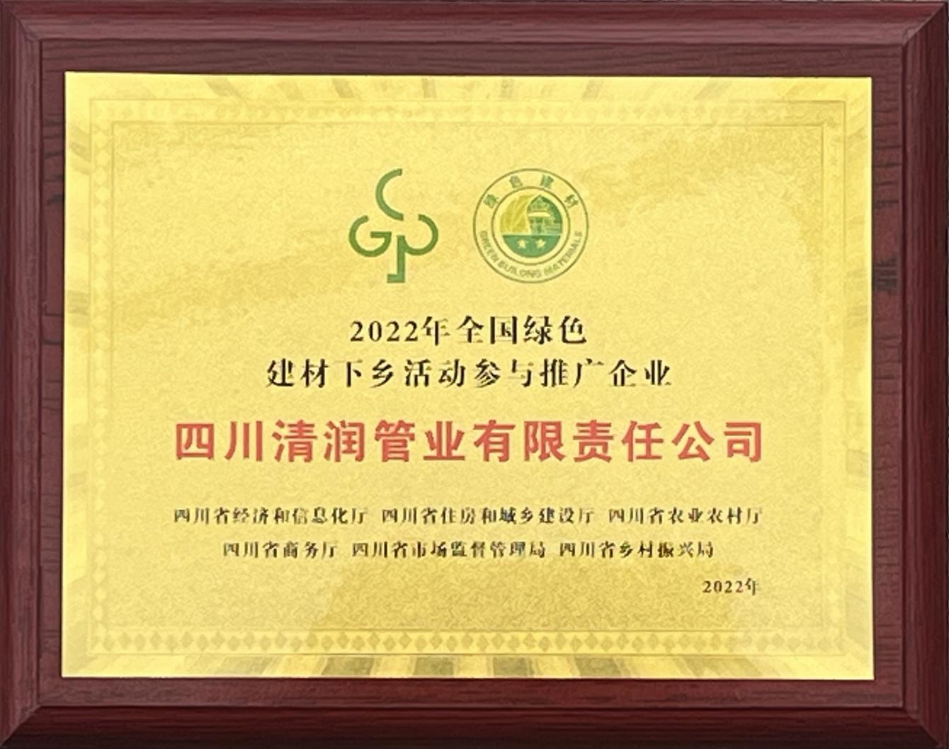 “清潤”自成立以來,便以“打造安全的城市地下生命線”為己任,先后為農(nóng)飲工程、四川大學(xué)、西南民族大學(xué)、第31屆世界大學(xué)生夏季運(yùn)動會場館等項目供應(yīng)了一系列的優(yōu)質(zhì)給水管材管件產(chǎn)品,得到了市場廣大客戶和社會各界的一致肯定。公司先后獲得了“四川名牌”、成都市市級守合同重信用企業(yè)稱號,入選《全國農(nóng)村飲水安全工程材料設(shè)備產(chǎn)品信息年報》、《成都市地方產(chǎn)品配套目錄》,信用等級AA級,成為中國塑料加工工業(yè)協(xié)會塑料管道專業(yè)委員會理事單位、中國工業(yè)防腐蝕技術(shù)協(xié)會、四川燃?xì)鈪f(xié)會等協(xié)會會員單位。2022年,在全國綠色建材產(chǎn)品四川站啟動會上,四川清潤管業(yè)還作為優(yōu)秀代表企業(yè)獲得授牌。