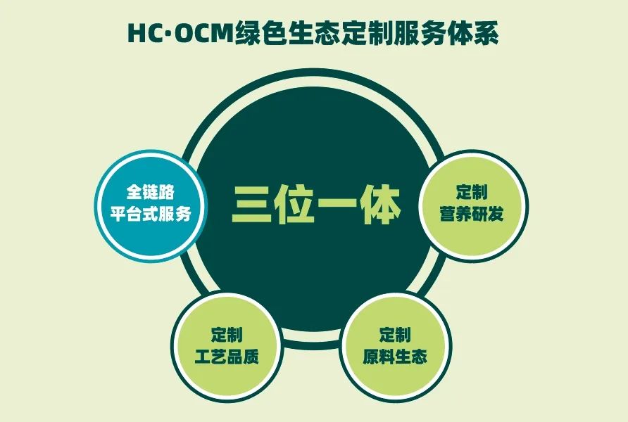 海辰有機不止提供基礎的OEM代工服務,更從品牌客戶的市場人群、寵物營養(yǎng)、產(chǎn)品功能三大需求入手,全力打造定制配方研發(fā)、定制生態(tài)原料、定制生產(chǎn)工藝、全鏈路平臺式服務四大方面在內(nèi)的HC·OCM綠色生態(tài)定制服務體系,為合作品牌的成長提供強有力支撐。