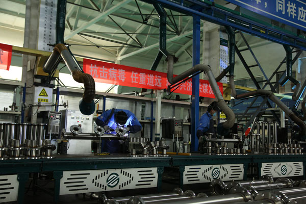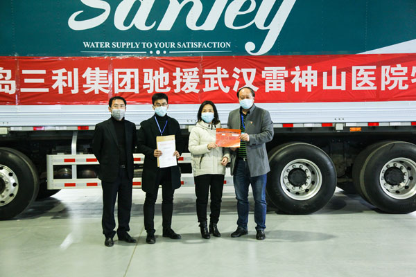 為確保雷神山醫(yī)院在2月5日完成交付,50多名尚在假期中的工人火速集結(jié),連夜開始了這場“閃擊戰(zhàn)”。公司其他訂單全為這套供水設(shè)備讓路,各道工序上投入的都是經(jīng)驗(yàn)豐富的精兵強(qiáng)將,12個(gè)車間機(jī)器轟鳴,馬力全開。公司高管不斷協(xié)調(diào)進(jìn)度,全體工人徹夜不休,終于在2月2日17時(shí)完成了設(shè)備的組裝。再經(jīng)過仔細(xì)調(diào)試,確保萬無一失之后,青島三利集團(tuán)將這套價(jià)值180余萬元的設(shè)備星夜發(fā)往武漢。