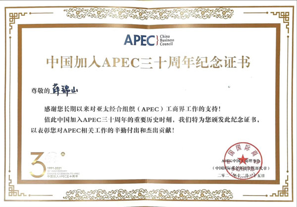 至今已得到逾60國政要貴賓青睞與認(rèn)可,擔(dān)當(dāng)著傳遞中國特色大國外交理念的茶文化使者,薛錦山于2021年獲得中國加入APEC三十周年紀(jì)念證書,于2022年被授予新時代中國經(jīng)濟創(chuàng)新人物榮譽稱號。