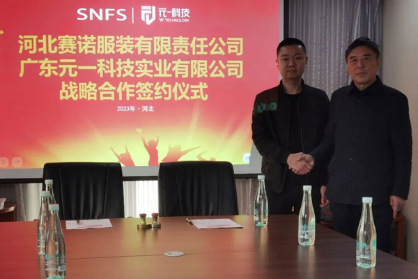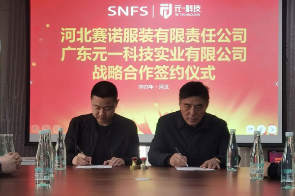 2023年2月27日,河北賽諾服裝有限責(zé)任公司同廣東元一科技實(shí)業(yè)有限公司在石家莊品匯大廈簽署了戰(zhàn)略合作協(xié)議,河北賽諾將引進(jìn)十臺(tái)價(jià)值數(shù)百萬(wàn)元的自動(dòng)鋪布和自動(dòng)裁床設(shè)備,旨在通過(guò)加強(qiáng)雙方在科技方面的協(xié)作進(jìn)一步深化戰(zhàn)略伙伴關(guān)系,推動(dòng)雙方在數(shù)字化、自動(dòng)化、智能化等方面的深度合作和公司的長(zhǎng)遠(yuǎn)發(fā)展。