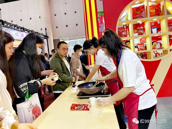 在紅九九品牌服務(wù)商-重慶貓頭鷹科技公司展區(qū),工作人員現(xiàn)場展示并詳細(xì)說明具體操作流程,只需兩步就能享用地道重慶火鍋。省時、省事、省心、方便、快捷是它的優(yōu)點;同時,紅99牌濃縮火鍋底料更是眾多家庭、餐廳、火鍋餐館、酒店選擇的方便型調(diào)味料,也是饋贈親友之佳品。希望可以將這份美味分享給全國乃至全世界的朋友們,即使在他鄉(xiāng)也能吃到正宗的重慶火鍋。