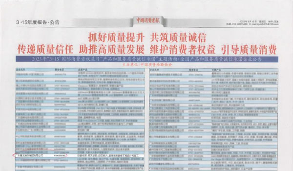 《中國(guó)質(zhì)量報(bào)》2023年3月15日