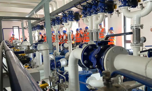 在李艷國董事長、生產(chǎn)部經(jīng)理王建成等領(lǐng)導(dǎo)的陪同下,商學(xué)院觀摩團(tuán)先后參觀了新廠的基礎(chǔ)油儲罐區(qū)、實驗中心、潤滑油調(diào)和設(shè)備及灌裝生產(chǎn)線、潤滑脂調(diào)和設(shè)備、金屬加工油液/防凍液/尿素溶液的生產(chǎn)工藝及設(shè)備。