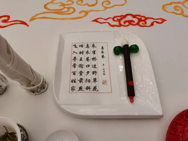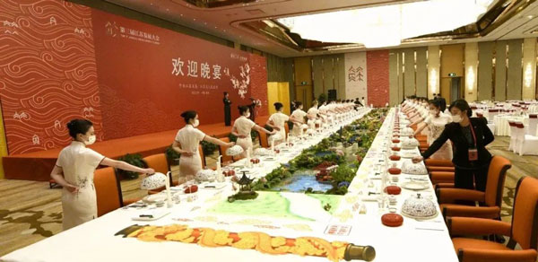 根據(jù)省委提出的“務(wù)實、高效、安全、節(jié)儉”的辦會原則,集團在對上兩屆大會晚宴接待工作全面復(fù)盤的基礎(chǔ)上,將傳統(tǒng)宴會服務(wù)與個性化服務(wù)相結(jié)合,創(chuàng)新細化工作方案,嚴明工作紀律要求。根據(jù)“統(tǒng)分結(jié)合”模式,實施“清單化管理、項目化推進、制度化保障”,確保層層有人抓、事事有人管、件件能落實。在用品用具調(diào)配上,本著“能儉不奢、能用不換”的原則,集團對上兩屆大會晚宴的服裝、餐具等用品用具進行了全面梳理和盤點,做到物盡其用、拾遺補缺、簡樸節(jié)省;在食材選擇和菜肴出品上,就地取材、應(yīng)時而獲、因材烹制,以水韻江蘇“江河湖海”相串聯(lián),“傳統(tǒng)菜、時令菜、地標菜、創(chuàng)新菜”四菜合一,體現(xiàn)江蘇的地域性、淮揚菜“色香味形”的統(tǒng)一性、綠色有機食材的鄉(xiāng)土性、安全性和人文典故與經(jīng)典傳承的文化性,給嘉賓帶來視覺與味覺的雙重盛宴。尤其值得一提的是,晚宴注重提煉展示江蘇地域文化精髓,堅持創(chuàng)造性轉(zhuǎn)化、創(chuàng)新性發(fā)展,如前菜設(shè)計上巧妙融入了贊美江蘇的經(jīng)典詩詞,紙是糯米紙,墨是墨魚汁,筆是巧克力,筆架是如意糖,創(chuàng)新餐飲文化表達方式,引發(fā)了鄉(xiāng)情共鳴,彰顯了文化自信,嘉賓們紛紛贊嘆金陵“細微之處見功夫”。