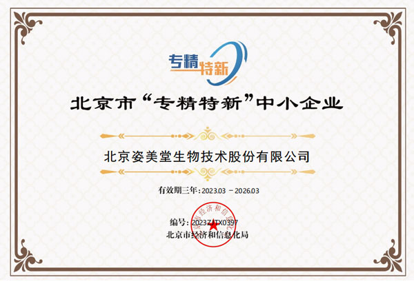 日前,北京市經(jīng)濟(jì)和信息化局正式公布2022年第四季度北京市“專精特新”中小企業(yè)名單,北京姿美堂生物技術(shù)股份有限公司憑借在數(shù)字健康領(lǐng)域的創(chuàng)新技術(shù)實力和行業(yè)影響力,獲評認(rèn)定為北京市“專精特新”中小企業(yè),科技創(chuàng)新勢能持續(xù)釋放。