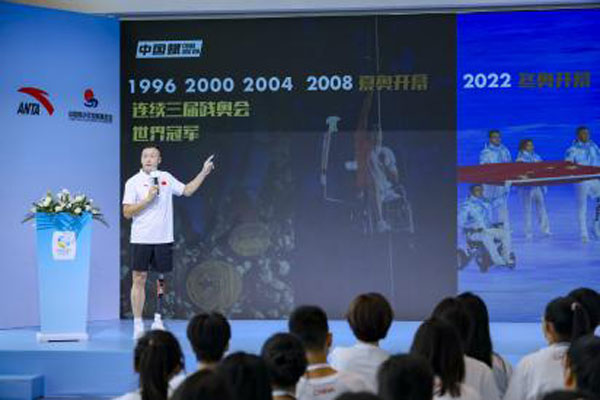 繼2022年安踏希望班研學(xué)營(yíng)舉辦“強(qiáng)國(guó)有我青年說(shuō)”直播活動(dòng)后,“時(shí)代新青年最強(qiáng)音”作為2023年安踏希望班研學(xué)營(yíng)的重磅活動(dòng)于8月11日上午舉行,并進(jìn)行了全網(wǎng)直播。安踏集團(tuán)副總裁李玲、中國(guó)青少年發(fā)展基金會(huì)秘書長(zhǎng)萬(wàn)學(xué)軍出席了活動(dòng)。三屆殘奧會(huì)金牌得主、中國(guó)殘奧委員會(huì)副主席侯斌也應(yīng)邀來(lái)到現(xiàn)場(chǎng),與同學(xué)們面對(duì)面交流,分享勵(lì)志故事,激勵(lì)學(xué)生們?cè)O(shè)立目標(biāo)、拓寬眼界、無(wú)所畏懼、勇攀高峰。他鼓勵(lì)同學(xué)們時(shí)談到“人生不設(shè)限,要面對(duì)自己的目標(biāo),相信相信的力量,努力到極致就可以實(shí)現(xiàn)它!”