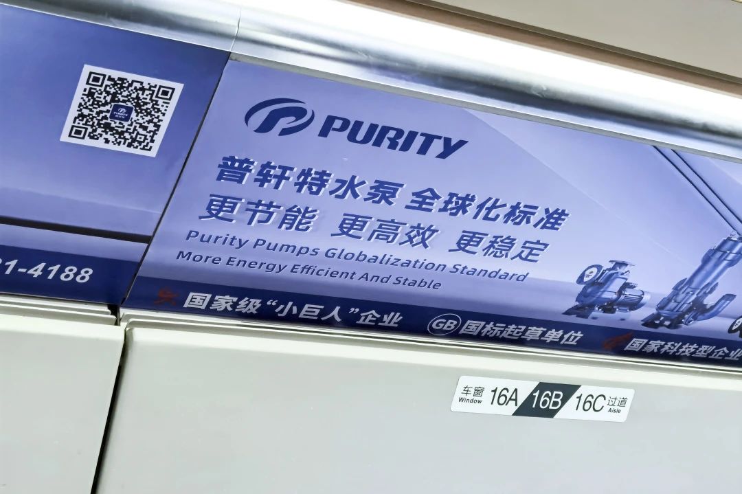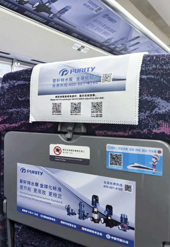 “普軒特號”高鐵專列以“普軒特水泵,全球化標(biāo)準(zhǔn)”為主旨,在車廂內(nèi)以全面覆蓋的宣傳形式,將專列打造成展示普軒特形象的“移動展廳”,深度刻畫普軒特對全球標(biāo)準(zhǔn)的堅定態(tài)度