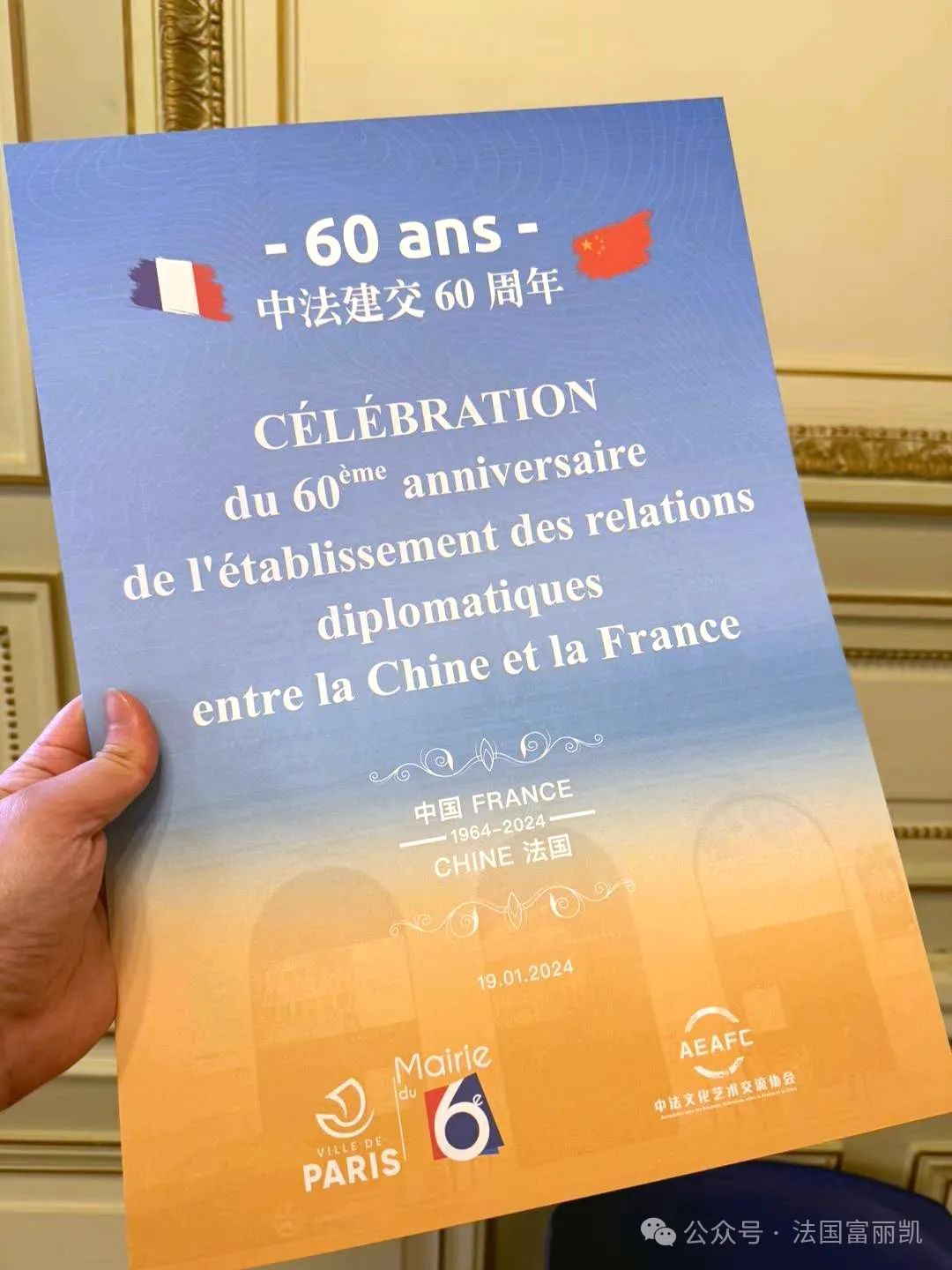 1月27日是中法建交60周年紀(jì)念日,日前由中法文化藝術(shù)交流協(xié)會(huì)(AEAFC)主辦的慶祝中法建交60周年文藝演出在巴黎6區(qū)政府禮堂舉行。巴黎6區(qū)政府、中國駐法使館等相關(guān)政府工作人員、歐洲時(shí)報(bào)、全球公益聯(lián)盟等組織負(fù)責(zé)人等出席活動(dòng),共話新時(shí)期大國友誼的現(xiàn)實(shí)意義及長遠(yuǎn)影響。60周年、巴黎6區(qū),也寄寓著對(duì)中法交往六六大順的期盼。