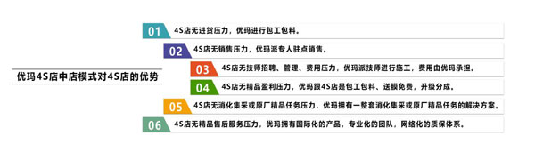 針對(duì)汽車(chē)主機(jī)廠和4S店渠道,優(yōu)瑪進(jìn)行了服務(wù)創(chuàng)新升級(jí),從傳統(tǒng)的售后服務(wù)升級(jí)成包括優(yōu)質(zhì)產(chǎn)品推薦、差異化的產(chǎn)品及技術(shù)培訓(xùn)、整車(chē)加精品一體式的項(xiàng)目運(yùn)營(yíng)指導(dǎo)、階段性店面活動(dòng)營(yíng)銷(xiāo)策劃、售后優(yōu)先賠付、增值服務(wù)營(yíng)銷(xiāo)等等全方位的咨詢(xún)式服務(wù)營(yíng)銷(xiāo)模式。30多家4S店集團(tuán)和車(chē)廠超2000家4S店的優(yōu)質(zhì)服務(wù)經(jīng)驗(yàn),奠定了優(yōu)瑪品牌已成為中國(guó)4S渠道最專(zhuān)業(yè)的太陽(yáng)膜項(xiàng)目整體運(yùn)營(yíng)服務(wù)解決方案提供商之一的行業(yè)領(lǐng)航者地位。