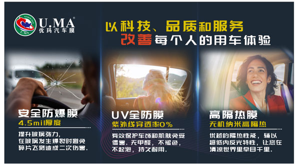 U.MA優(yōu)瑪是國(guó)內(nèi)汽車(chē)膜工廠當(dāng)中具備20多年市場(chǎng)沉淀的世界窗膜十大品牌;上海佳尼士新材料科技有限公司是中國(guó)最專(zhuān)業(yè)的品牌運(yùn)營(yíng)企業(yè)之一。