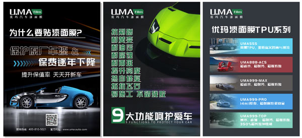 2020年,優(yōu)瑪品牌推出第二代漆面保護(hù)膜,包括UMA333、UMA555、UMA666、UMA888ACS、UMA999TOP、UMA999MAX、UMA999PRO系列,進(jìn)一步滿(mǎn)足了客戶(hù)以及消費(fèi)者對(duì)于汽車(chē)漆面保護(hù)的各類(lèi)需求,同時(shí)也鞏固了優(yōu)瑪漆面保護(hù)膜在中國(guó)市場(chǎng)的領(lǐng)導(dǎo)地位。同時(shí),優(yōu)瑪品牌發(fā)布全新優(yōu)瑪汽車(chē)漆面膜品牌logo形象,進(jìn)一步優(yōu)化了品牌形象策略。