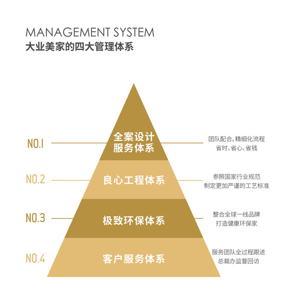 全案設(shè)計(jì)服務(wù)體系是指大業(yè)美家為客戶提供設(shè)計(jì)、施工、輔材、主材、產(chǎn)品軟裝一整條服務(wù)鏈,目的是讓客戶更輕松,不需要東奔西走,不需要擔(dān)心惶恐,只要找大業(yè)美家,就能夠解決裝修居住的所有問(wèn)題。