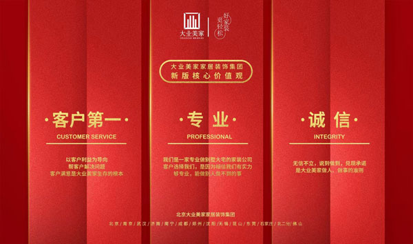 第四點(diǎn)是從2014年到2021年,每年我們都會(huì)獲得大量獎(jiǎng)項(xiàng),其中包括施工質(zhì)量類(lèi)、室內(nèi)設(shè)計(jì)類(lèi)、客戶服務(wù)類(lèi)、公司品牌類(lèi)、綠色環(huán)保類(lèi),說(shuō)明我們?cè)谶@五個(gè)方面做得很扎實(shí),而且在每個(gè)我們進(jìn)駐的城市也都獲得到了行業(yè)的尊重,這是因?yàn)槲覀兪冀K秉承“客戶第一、專(zhuān)業(yè)、誠(chéng)信”的價(jià)值觀,大業(yè)美家的每個(gè)人都是以這種價(jià)值觀作為行為準(zhǔn)則,做人扎實(shí)靠譜。