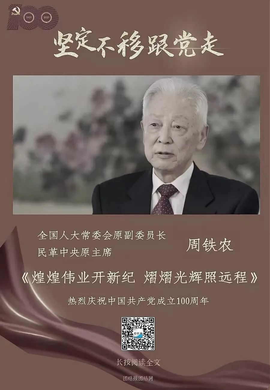 此時此刻,我們深切緬懷周鐵農(nóng)主席!“團結(jié)報團結(jié)網(wǎng)”特別刊發(fā)周鐵農(nóng)晚年接受本報記者專訪的文章《煌煌偉業(yè)開新紀 熠熠光輝照遠程——專訪民革中央原主席周鐵農(nóng) 》(首發(fā)于2021年6月29日),以表達我們的深切悼念和緬懷敬仰之情。