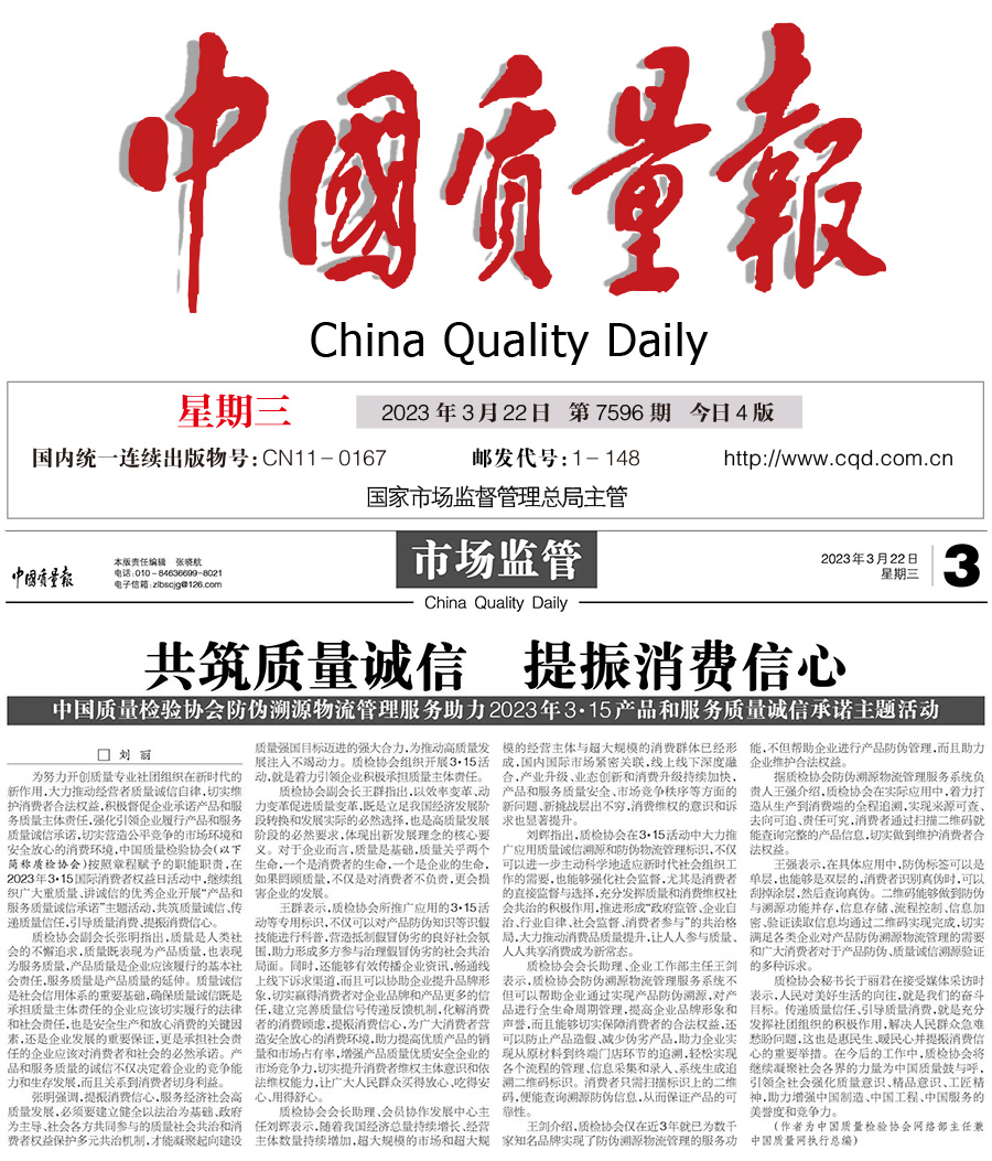 ——中國質(zhì)量檢驗(yàn)協(xié)會防偽溯源物流管理服務(wù)助力2023年3·15產(chǎn)品和服務(wù)質(zhì)量誠信承諾主題活動