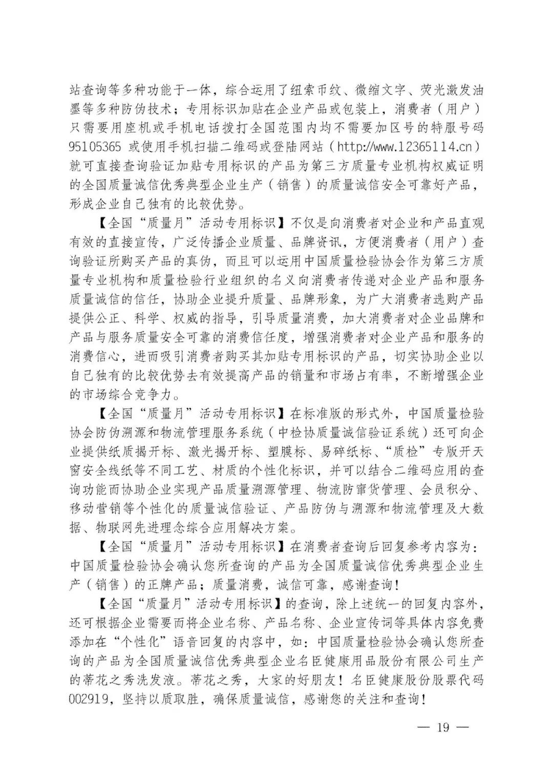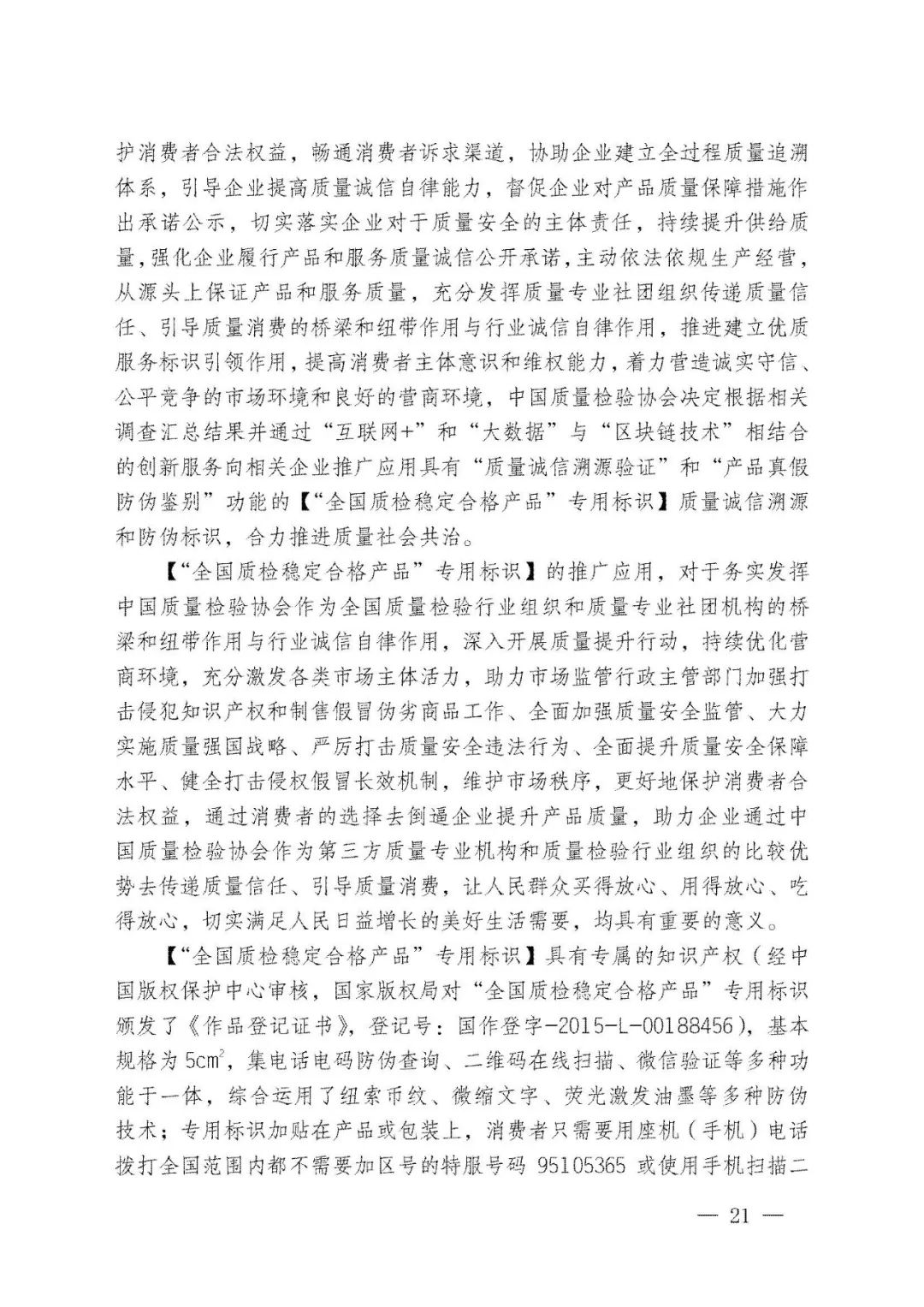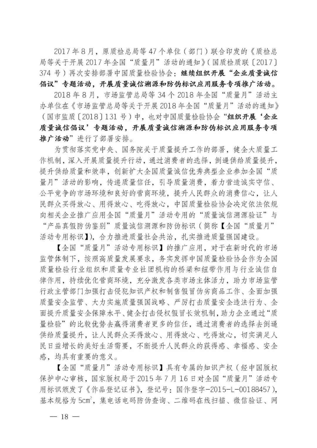 李克強總理批示指出,打造集質量、標準、技術、品牌等于一體的高品質產品和服務,在市場競爭中鍛就中國質量、培育中國精品。倡導企業(yè)對產品和服務質量作出誠信倡議,也是中國質量檢驗協(xié)會自2004年以來組織開展全國“質量月”企業(yè)質量誠信倡議專題活動的要義。謹期社會各界共同努力,推進質量社會共治,抓好產品和服務的高品質質量提升,共同為我們的質量強國事業(yè)去奮斗!