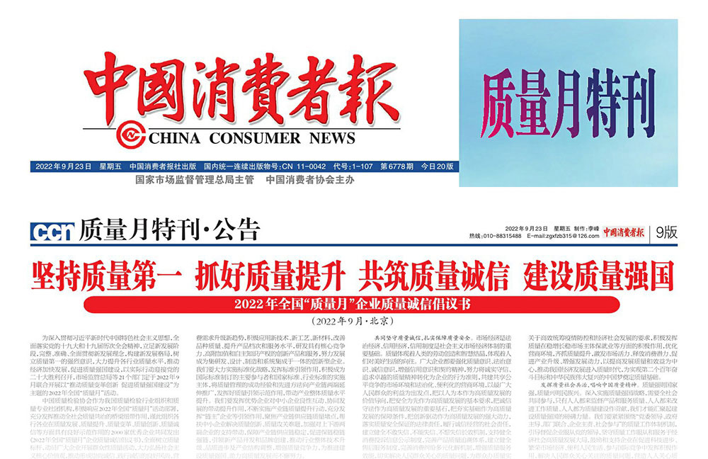 中國消費者報:堅持質(zhì)量第一 抓好質(zhì)量提升 共筑質(zhì)量誠信 建設(shè)質(zhì)量強國
