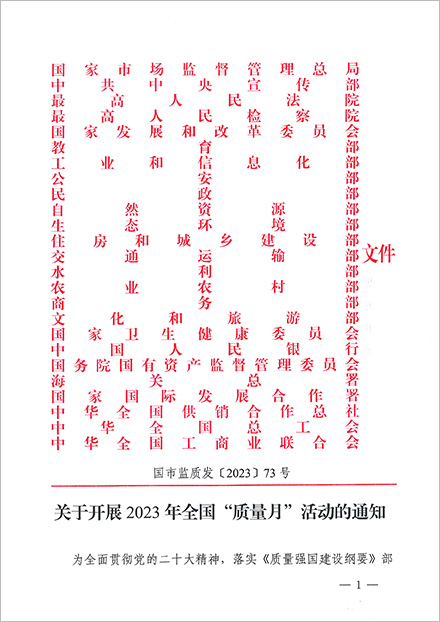 全國“質(zhì)量月”活動是我國長期開展的一項重大質(zhì)量活動,是在政府主管部門的倡導和部署下,聯(lián)合國家相關部委(部門)和單位并發(fā)動廣大企業(yè)與全社會積極參與,一年一度以多種形式于每年9月在全國范圍內(nèi)組織開展跨時一個月并旨在提高全民質(zhì)量意識和質(zhì)量水平的國家級大型質(zhì)量專題活動,全力營造人人關心質(zhì)量、重視質(zhì)量、創(chuàng)造質(zhì)量、享受質(zhì)量的良好社會氛圍,推進建設質(zhì)量強國。